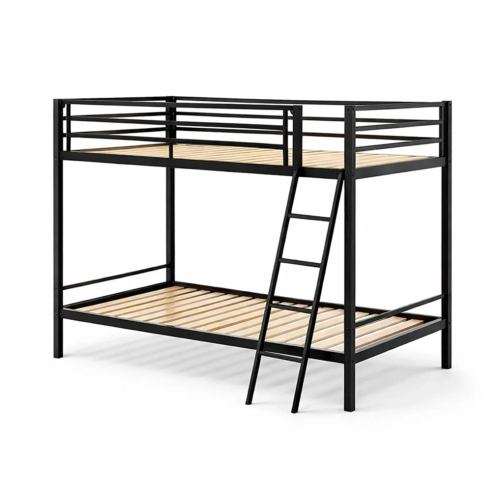 Letto a castello in metallo nero con doghe in legno