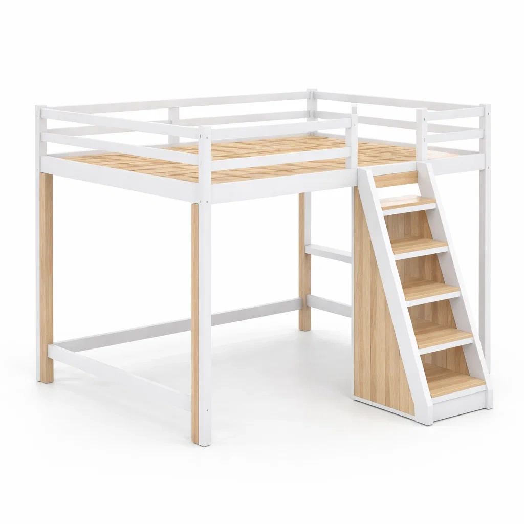 Colore: Bianco/Naturale. Struttura solida con scaletta laterale in legno.