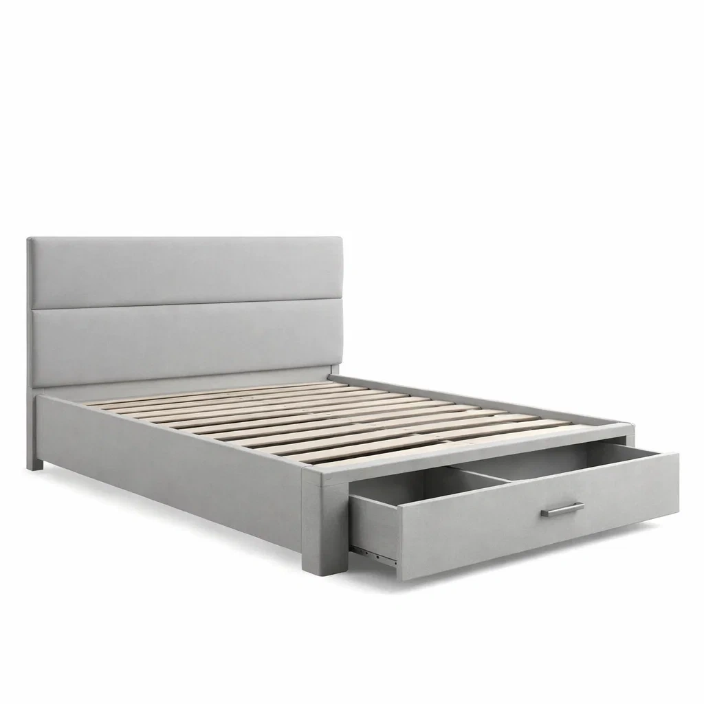Materiale del prodotto: struttura in legno, rivestimento in tessuto poliestere. Doghe in legno massello.