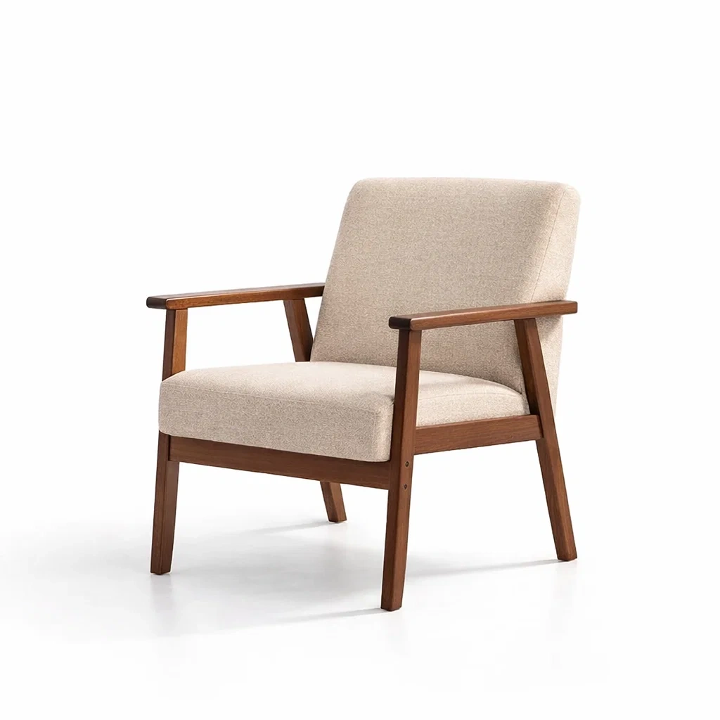 Poltrona in legno e tessuto beige
