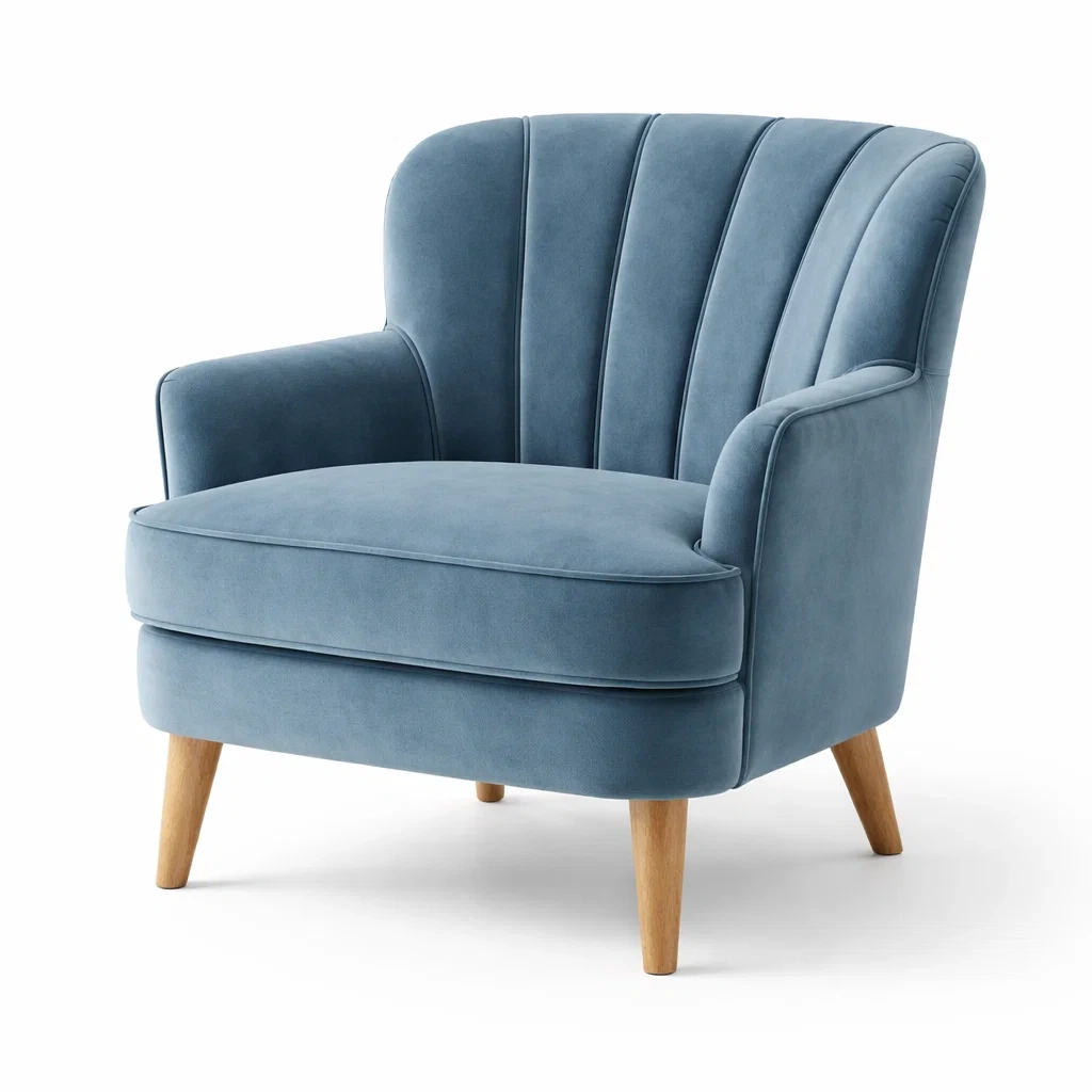 Poltrona in velluto con gambe in legno massello.