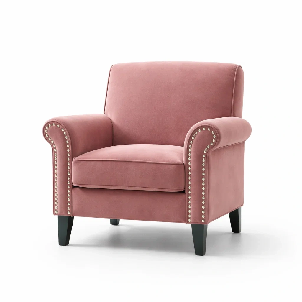 Rivestimento decorato con borchie su braccioli e schienale.