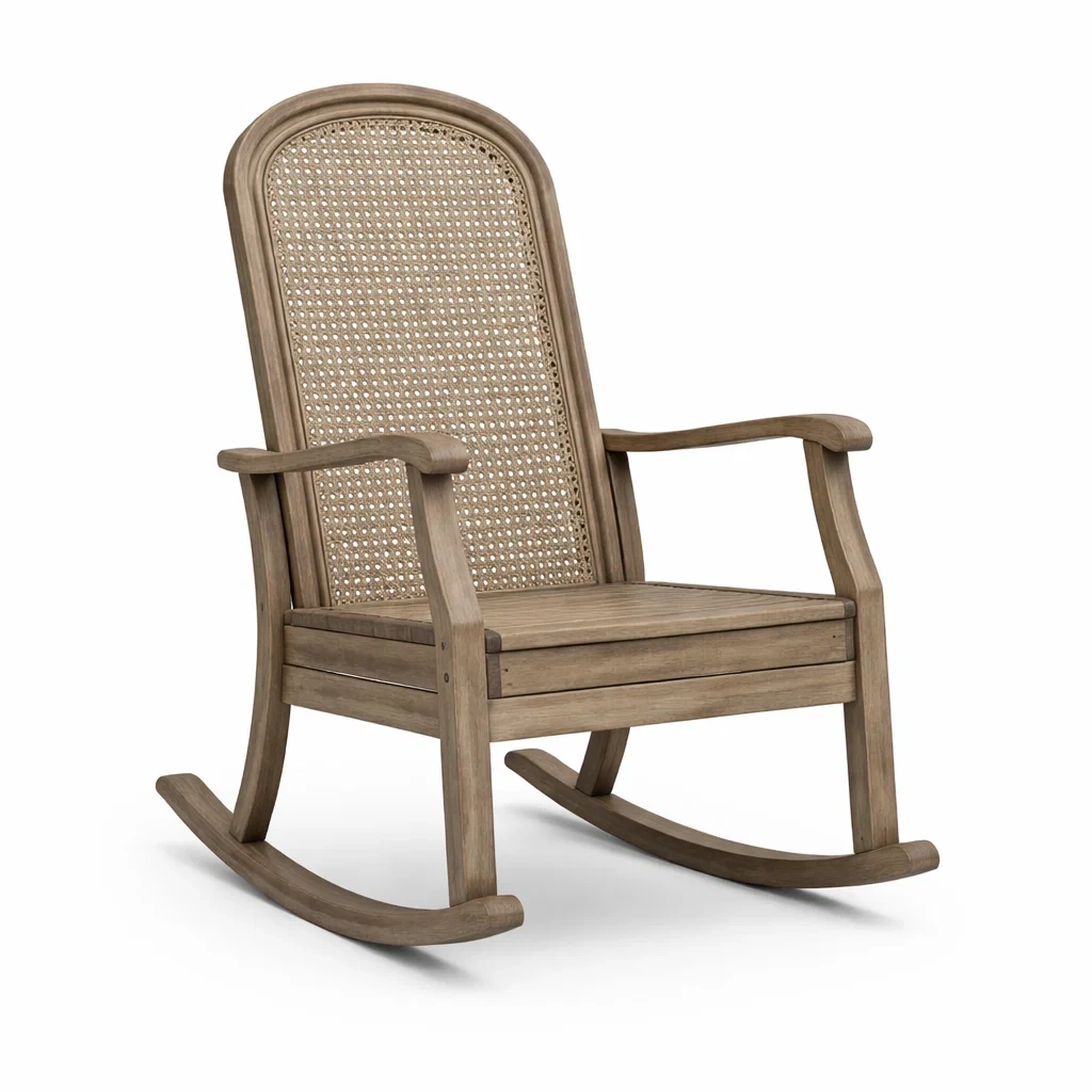 Sedia a dondolo in legno massello e rattan naturale