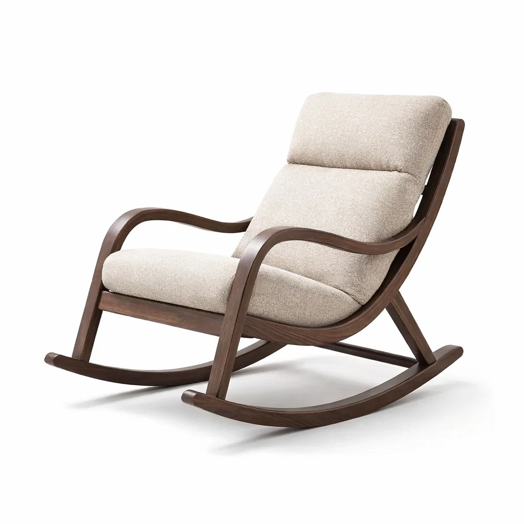 Sedia a dondolo in legno massiccio e tessuto in poliestere beige